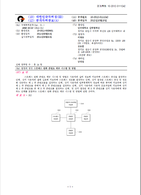 명칭 : 스트레스 완화 콘텐츠 제공 시스템 및 방법